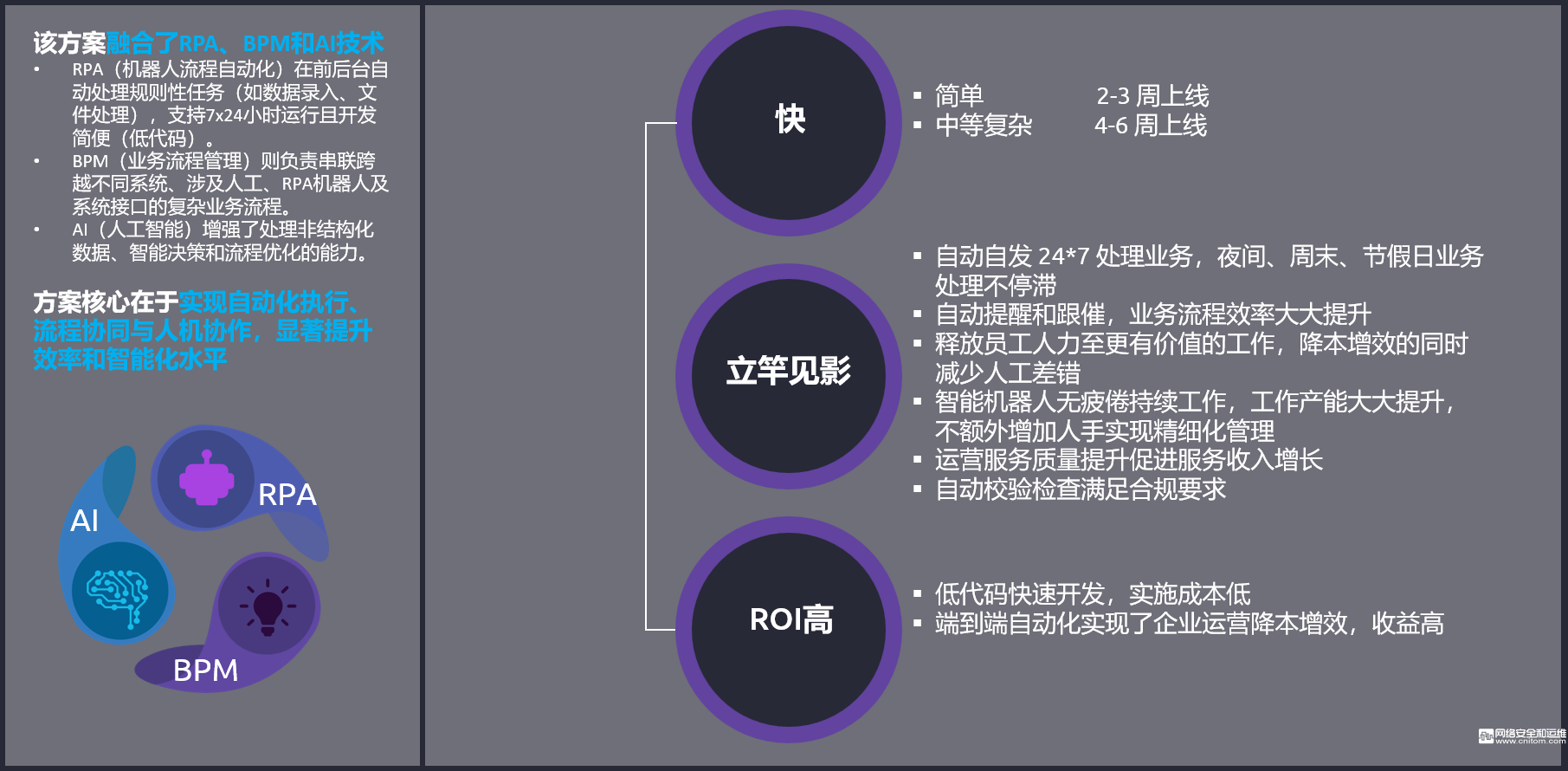 凯捷咨询结合 Gartner 的 BOAT 概念和为众多世界 500 强企业实施流程自动化的丰富经验,打造的端到端流程自动化方案: