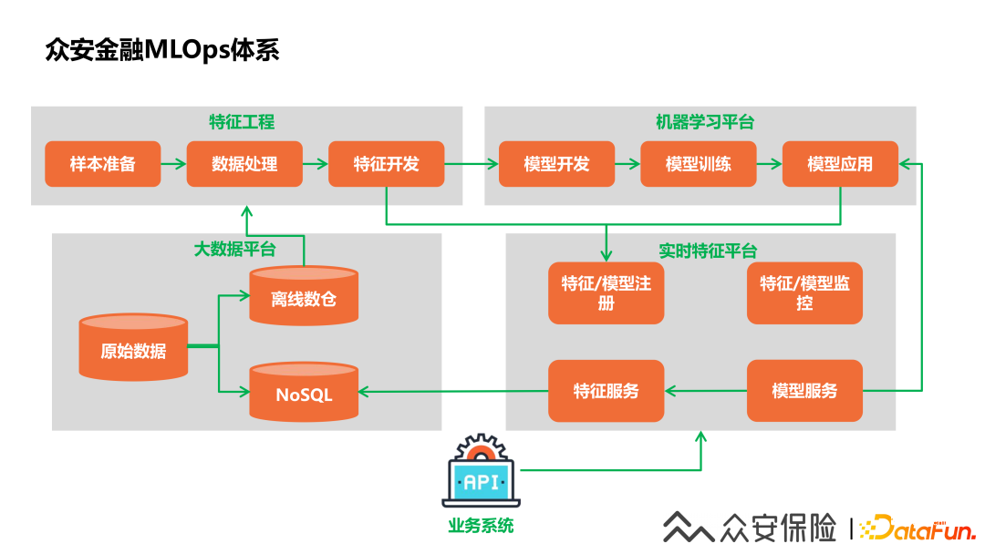 (4)离线调用平台:离线数据在阿里云的MaxComputer计算后同步到NoSQL存储,实现历史数据的回流,从而支撑用户全业务时间序列的特征计算,此外一些非实时指标也需要在离线数仓加工完成后再回流到NoSQL存储引擎。