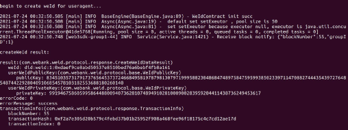 (1)搭建FISCO BCOS的区块链网络,如图3所示;(2)issuer发布凭证,如图4所示;(3)新员工委托用户代理持有VC,如图5所示;(4)新单位对基本信息进行验证,如图6所示。