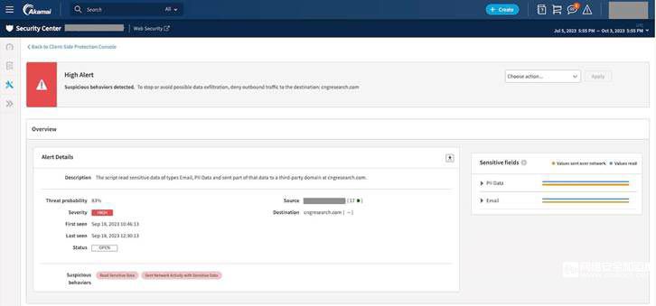 作为对这一活动研究的一部分,我们针对Akamai客户端保护与合规性进行了模拟,我们的解决方案可以分析运行时的JavaScript执行行为,从而抵御JavaScript威胁并减轻客户端攻击。