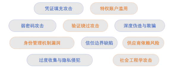 - 技术手段:不安全的身份生命周期管理、认证与授权耦合错误、弱Token/Session管理、账户同步不一致等。