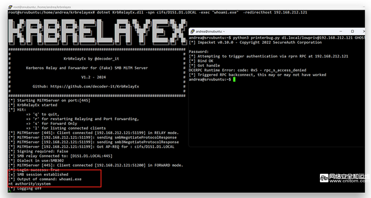 - 使用 Kerberos 中继工具(如 Pierini 开源的 KrbRelayEx)拦截认证