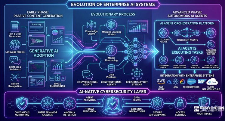当大语言模型驱动的 AI 代理逐步实现自主推理、工具调用与跨系统协同作业,企业网络安全防线正面临前所未有的严峻挑战。防火墙、特征码查杀、静态 RBAC 权限体系等长期守护网络空间的传统防护手段,在应对 AI 代理的非确定性行为与新型攻击时,短板日益凸显。传统安全体系面向确定性软件而设计,而 AI 代理的自主化、动态化特质,正深刻重塑网络攻防格局,一场面向 AI 原生安全的深刻变革,已然全面拉开帷幕。